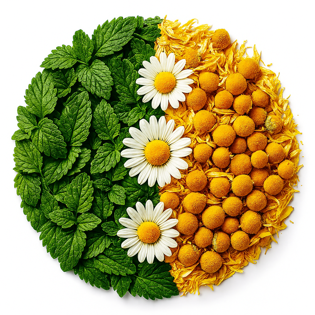 - Organic Chamomile Flowers – calming, anti-inflammatory
